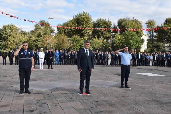 Cumhuriyetimizin kurucusu Gazi Mustafa Kemal Atatürk ve tüm şehit ve gazilerimiz adına yapılan saygı duruşu ile başlayan program İstiklalimizin simgesi İstiklal marşımızın okunmasıyla devam etti. Çelenk sunma programını Gazilerin konuşması izledi.