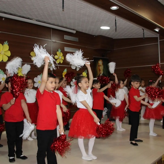 Cansu Soydan'nın "Çocuk Bayramı" adlı şiiri seslendirmesini, 1/H , 1/J ve 1/N sınıflarının Tebessüm, Bir dünya bırakın biz çocuklara ve Tükiye adlı gösterileri izledi.