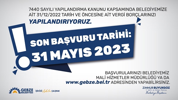 2022 öncesi borçların yapılandırılması için son başvuru tarihi 31 Mayıs 2023 Çarşamba Saat 17.00'dir.