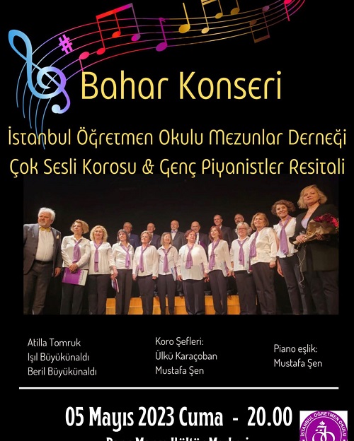 İstanbul İlköğretmen Okulu Mezunları ve Mensupları Derneğince organize edilen bahar konseri 5 Mayıs Cuma akşamı saat 20.00'da Kadıköy Barış Manço Kültür Merkezinde gerçekleşecek.