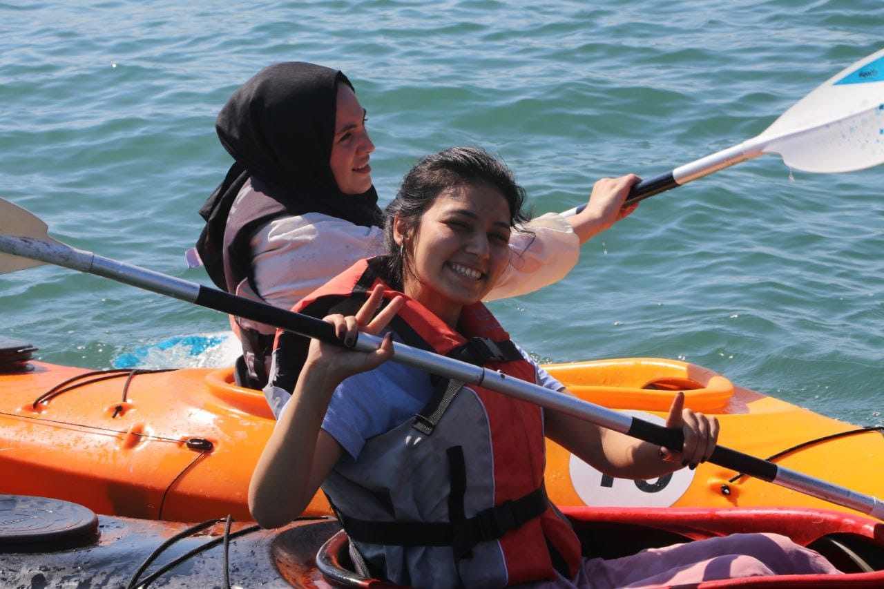 Su Sporları Merkezi’nde kano yapmak için gelen ilçe sakinlerine öncelikle ekipmanlar ve kullanımları anlatılıyor, ardından eğitmenler eşliğinde denizde kano keyfi başlıyor.