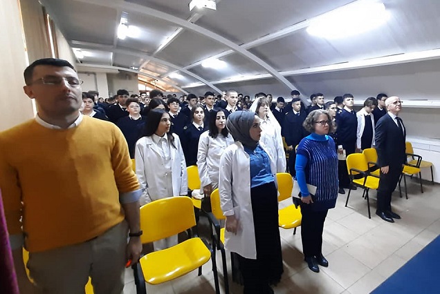 Okul konferans salonunda gerçekleşen törende öğrenciler okudukları