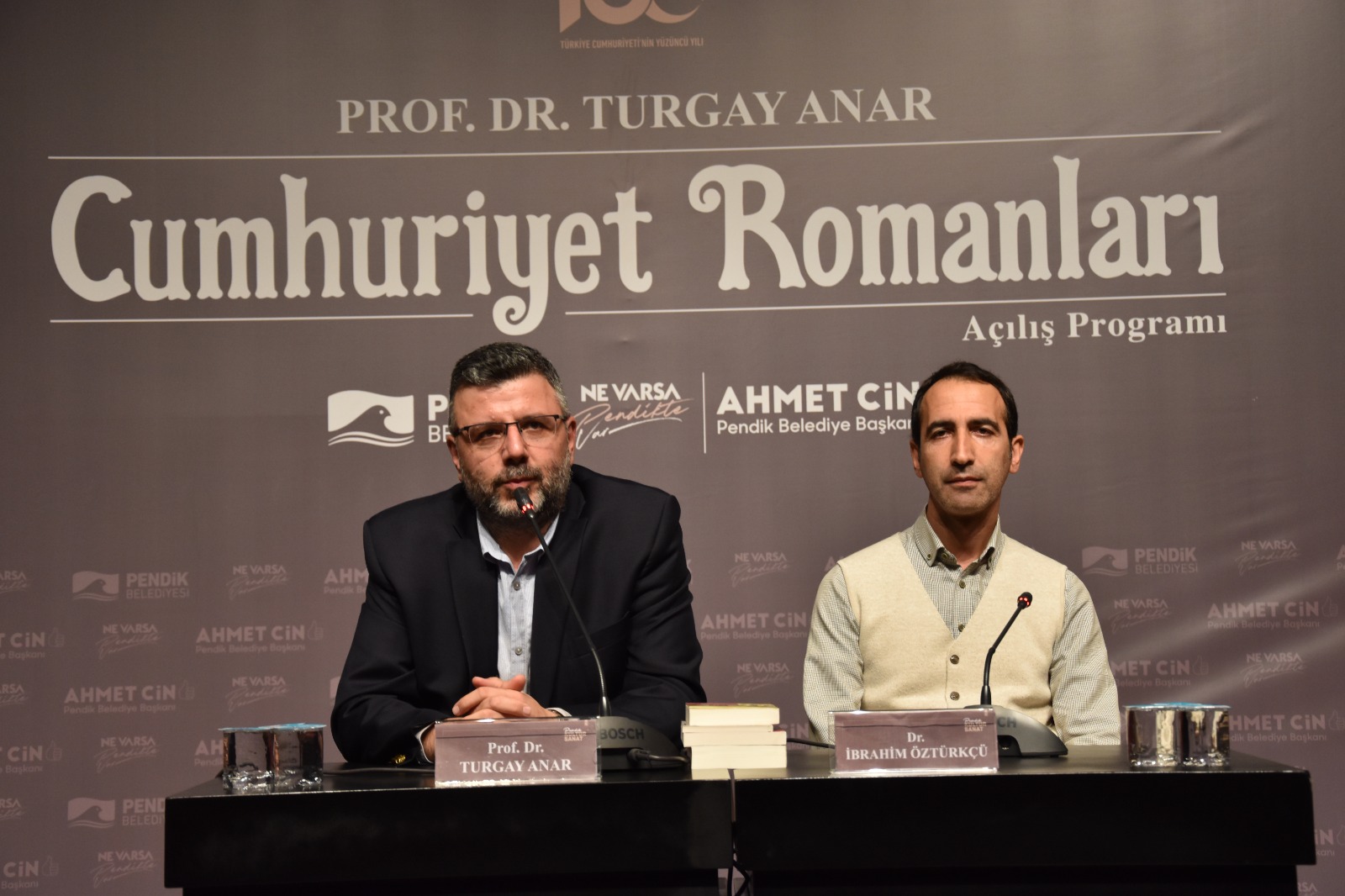 Programda Prof. Dr. Turgay Anar ve Dr. İbrahim Öztürkçü, cumhuriyet dönemi edebiyatcılarımız ve eserlerinden örnekler verdi.