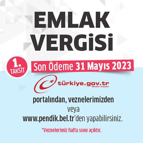 Emlak vergisinin son ödeme tarihi 31 Mayıs 2023 salı günü Saat:17.00