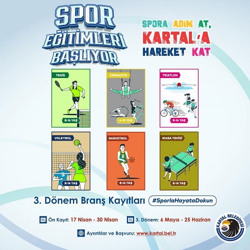 Uzman eğitmenlerimiz ile düzenlediğimiz ücretsiz spor eğitimlerinin 3. dönemi başlıyor. Ayrıntılı bilgi ve başvuru için https://bit.ly/SporKayit adresini ziyaret edebilirsiniz.