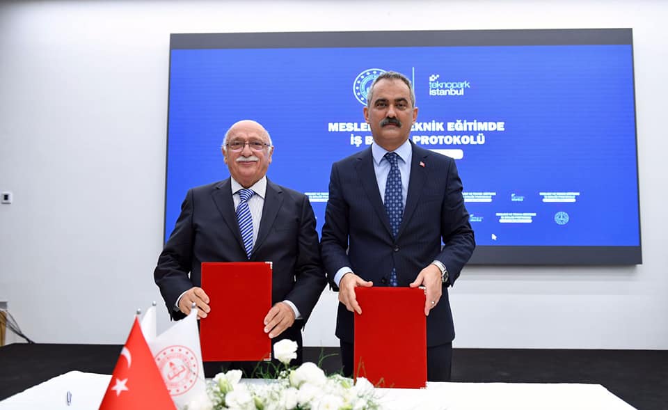 Mesleki eğitim merkezi programına kayıt yaptıran öğrencilerin mesleki eğitim ve istihdam süreçlerini yürütmek, öğrencilere burs desteği sağlamak, Teknopark İstanbul bünyesinde faaliyet gösteren işletmelerde öğrencilere nitelikli istihdam olanakları sunmak amacıyla Millî Eğitim Bakanlığı ve İstanbul Teknopark AŞ arasında imzalanan protokol için yapılan törende konuşan Millî Eğitim Bakanı Mahmut Özer, mesleki eğitimin yakın tarihteki gelişimine dair bilgiler paylaştı.