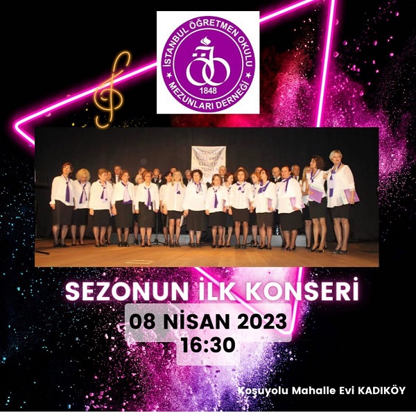 İstanbul Öğretmen Okulu mezunu öğretmenler, 8 Nisan 2023 Cumartesi günü (bu gün) Kadıköy KOŞU YOLU MAHALLEEVİ'nde bir konser veriyor. Saat 16.30'da başlayacak olan konserde İstanbul Öğretmen Okulu mezunu emekli öğretmenler sahne alacak.