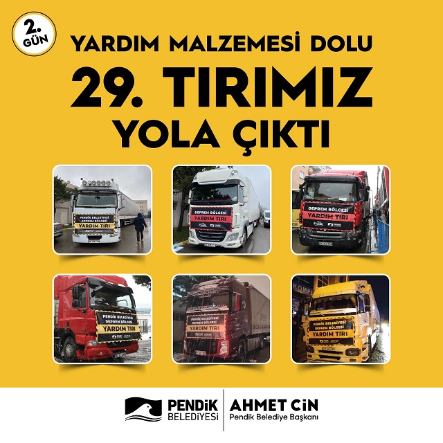 Felaketin 2. Gününde yardım malzemesi dolu 29. tırını depem bölgesine gönderdi.