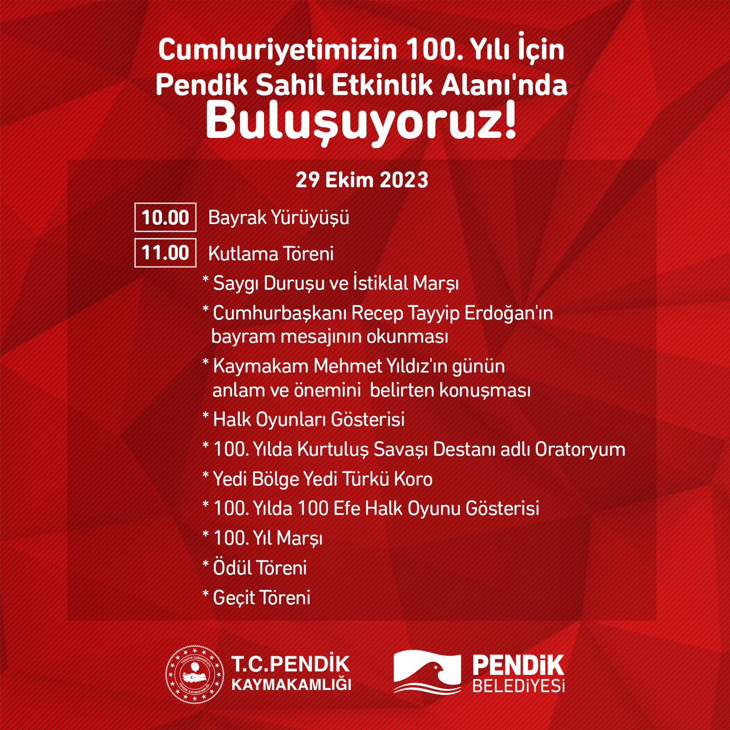Haydi Pendik! Cumhuriyetimizin 100 İçin Pendik Sahil Etkinlik Alanı’nda Buluşuyoruz.
