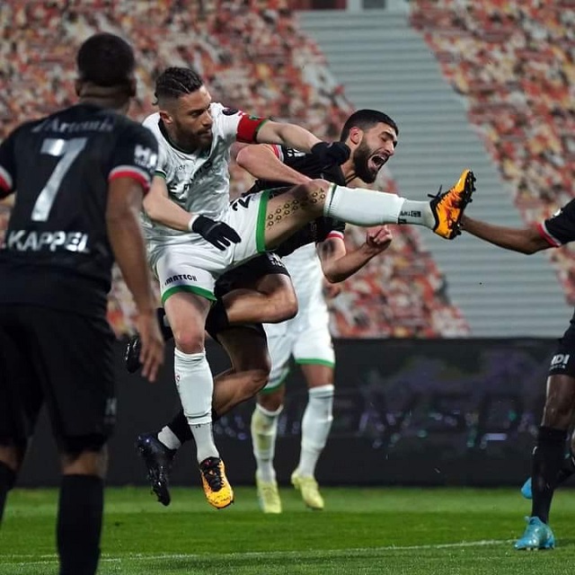 28. dakikada Denizlispor oyuncusu Mayi, rakibine yaptığı sert müdahalenin ardından sarı kart gördü.