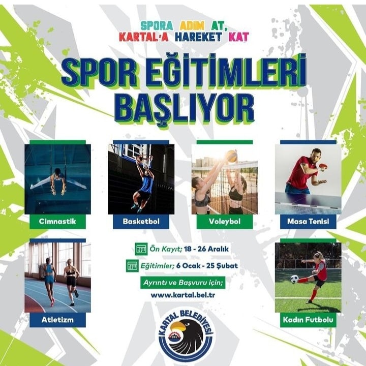 Kartal belediyesi Uzman eğitmenleri ile düzenlediği ücretsiz spor eğitimleri başlıyor. Ayrıntılı bilgi ve başvuru için bit.ly/SporKayit adresini ziyaret edebilirsiniz.