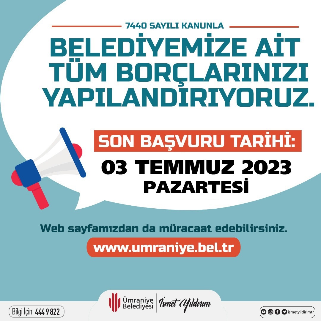 Ümraniye belediyesi tüm borçların yapılandırılacağını duyurdu.
