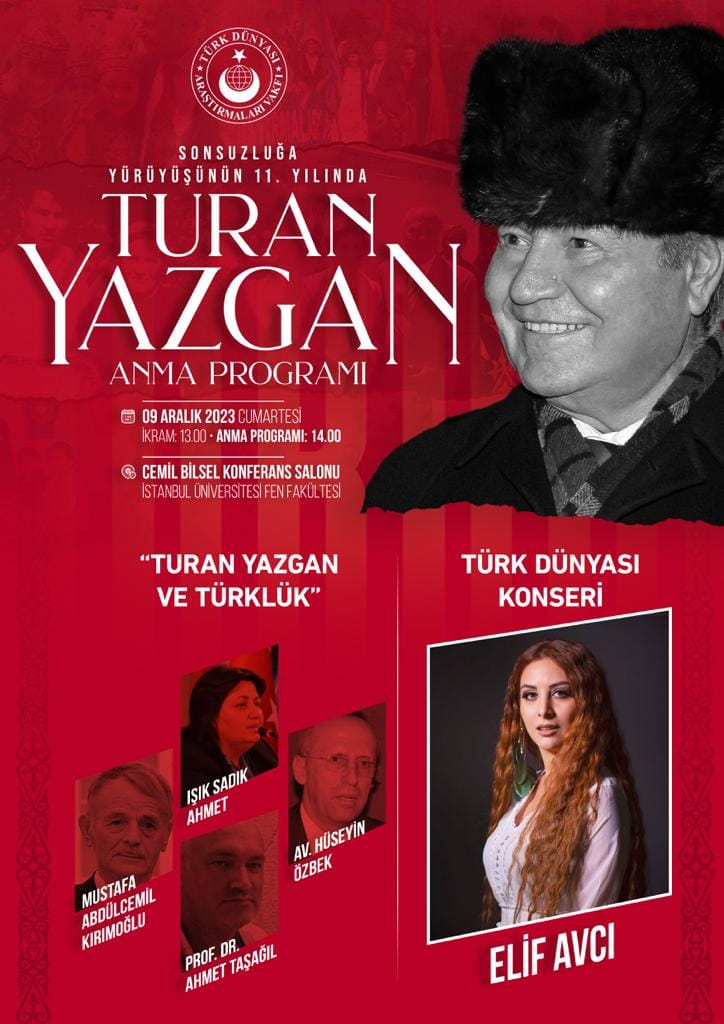 Bütün ömrünü Türk Dünyası’nın “Dilde, Fikirde, İşte Birliği” ülküsünü gerçekleştirmek yolunda harcayan, Vakfımızın Kurucu Başkanı, Son Yüzyılın Büyük Türkçüsü “Prof. Dr. Turan Yazgan Hocamızı Sonsuzluğa Yürüyüşünün 11. Yılında Anma Programı”nda sizlerle birlikte olmaktan mutluluk duyarız.