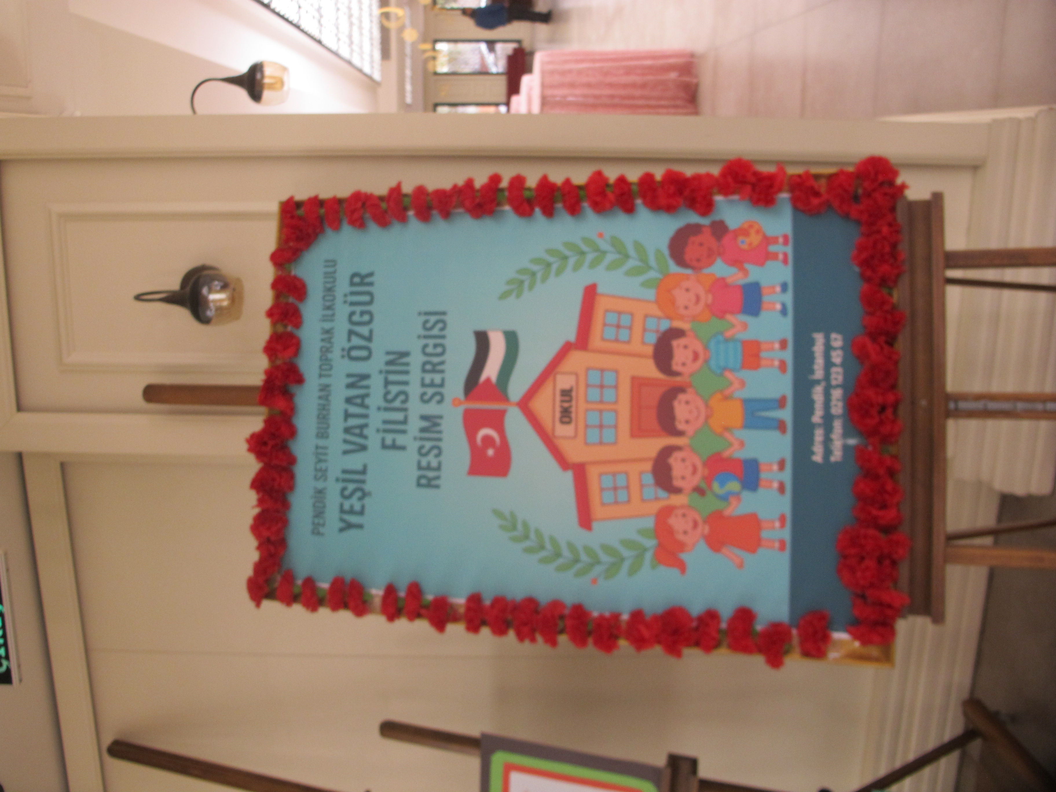 Pendik Seyyit Burhan Toprak İlkokulu Öğrencileri "Yeşil vatan, Özgür Filistin" konulu bir resim sergisi açtı.
