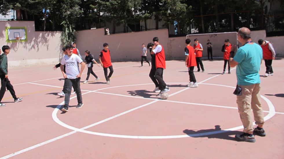 Okul bahçesinde, öğle arasında organize edilen turnuva Okul Müdürü Ümit Yıldırım'ın başlama vuruşuyla başladı.