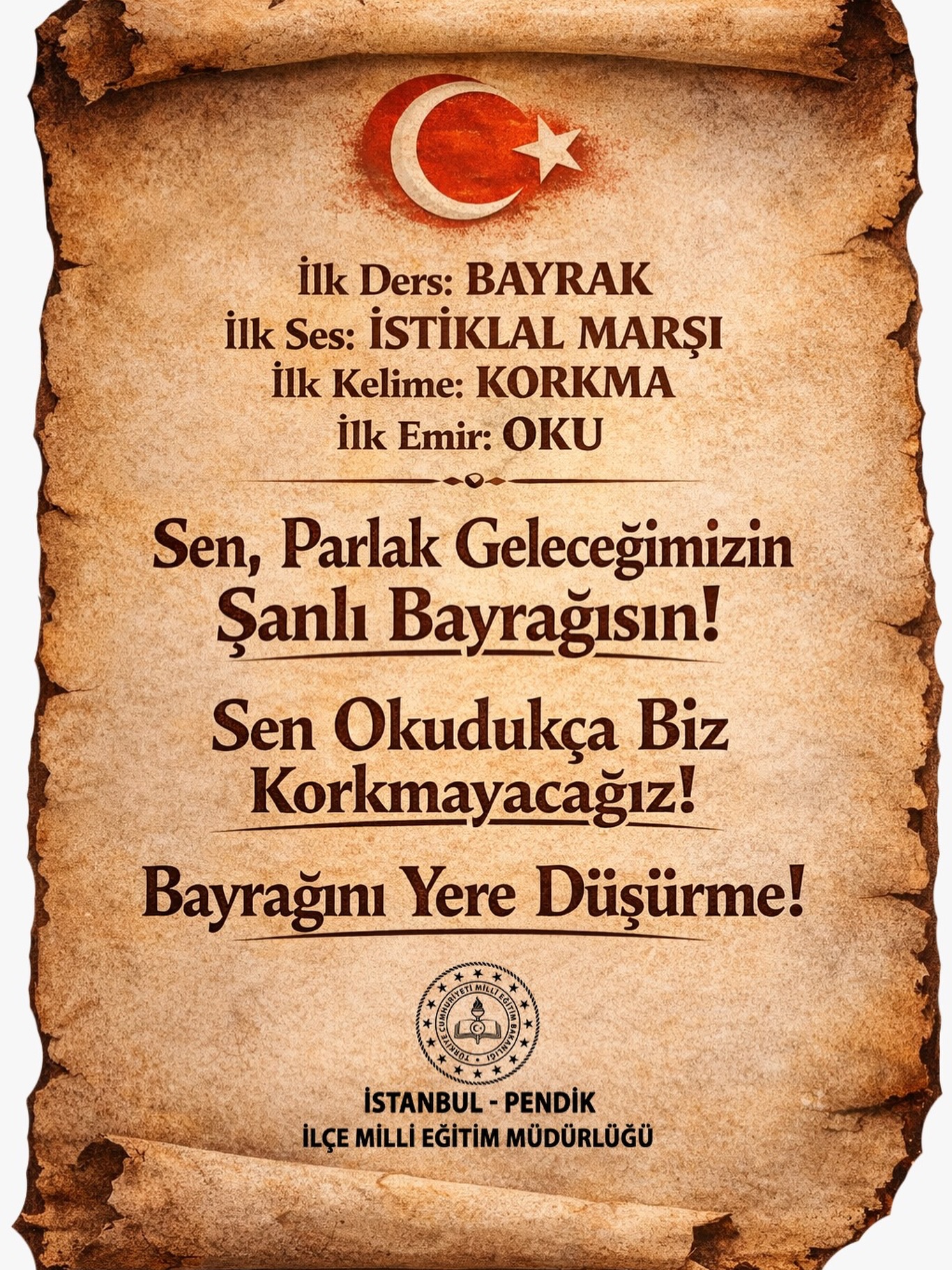 Pendik'te 2025-26 Eğitim ve Öğretim yılı 2. dönemi İstiklal Marşımızın okunmasıyla başlayacak, öğretmenler birinci derste İstiklal marşımızı açıklayacak. Öğretmenle derse Türk bayrağı ile girecek.