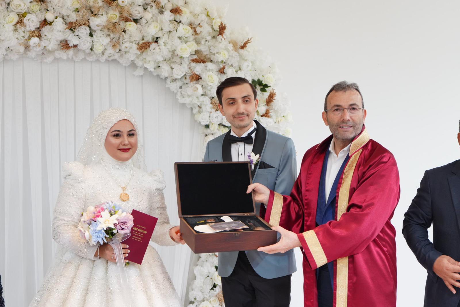 Pendik Belediye Başkanı Ahmet Cin'in nikah kıydığı törende damat Yusuf Sabri Koca Kuran-ı Kerim tilaveti yaptı. Başkan Ahmet Cin ve Eğitim Bir Sen İstanbul 4 Nolu Şube Başkanı Bilal Duran kısa birer konuşma yaptı. Konuşmalarında gelin ve damadı tebrik edip, mutluluklar dilediler.