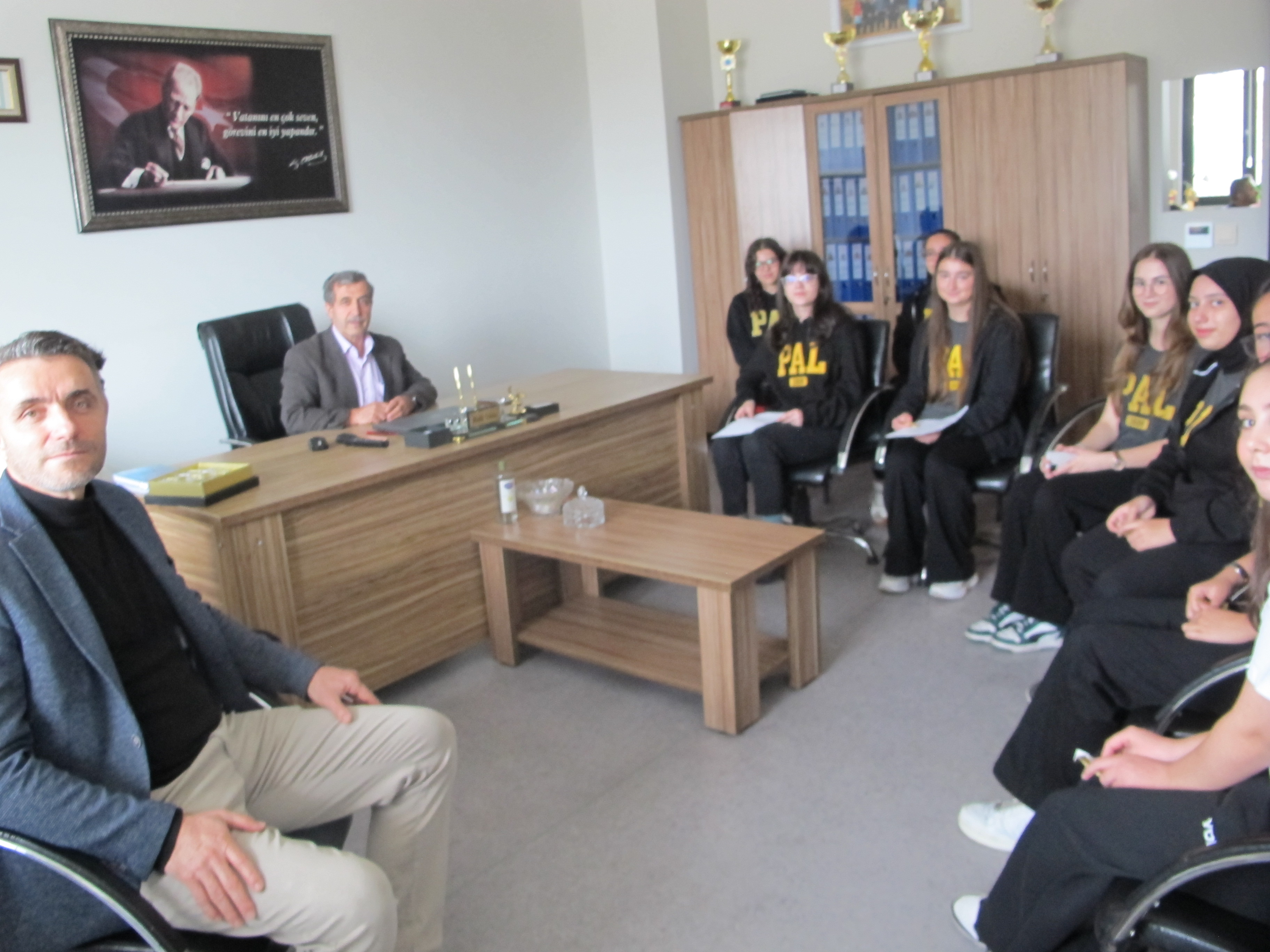 Tuzla Tuğrul Bey Anadolu Lisesi Müdürü Halil Yıldız, misafirlerini kapıda karşıladı. Müdür odasında misafirleri kabul eden Müdür Yıldız, ikram sonra konukları müdür yardımcıları ile tanıtıp, okulu gedirdi.